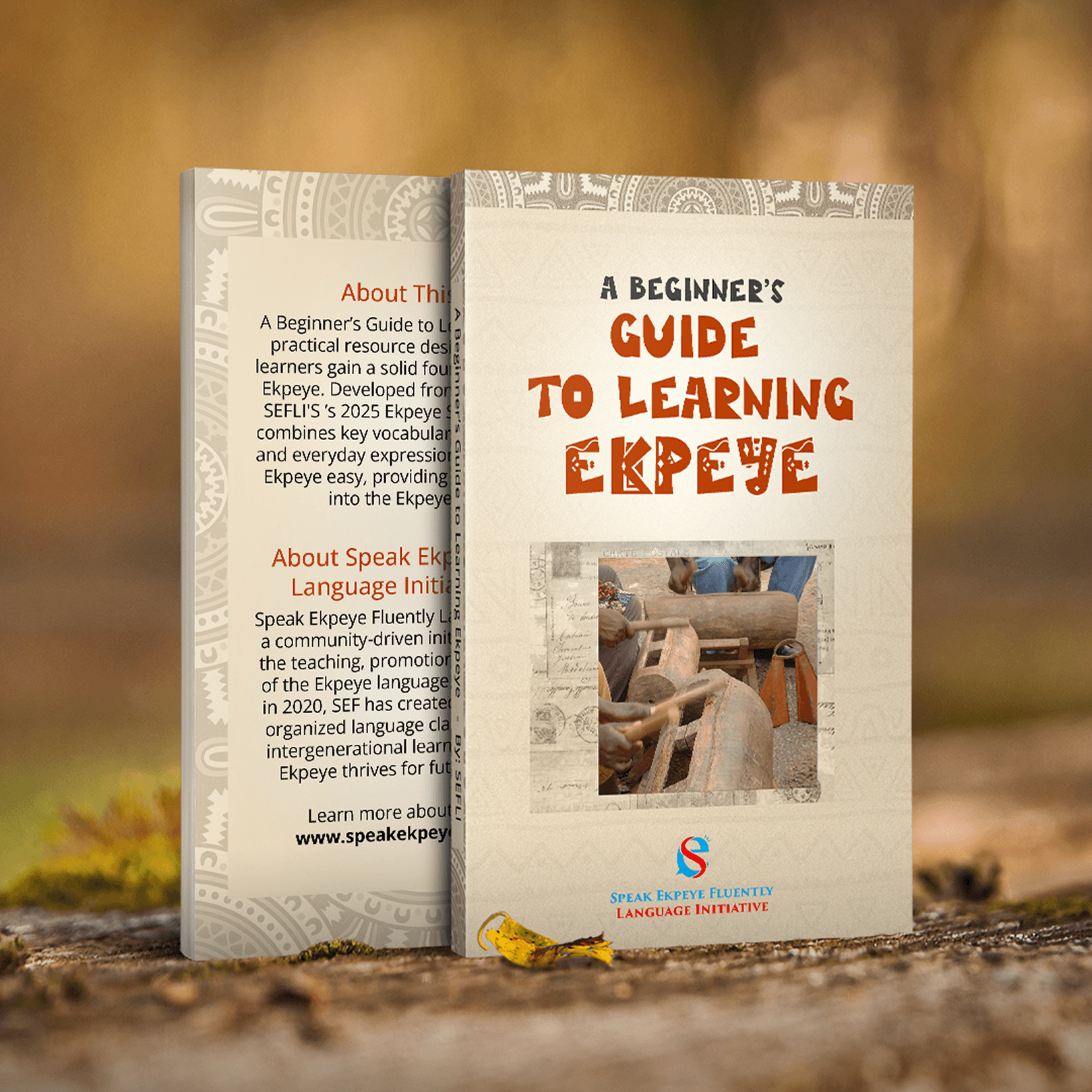 A Beginner’s Guide to Learning Ekpeye is a practical resource created to help new learners build a strong foundation in speaking Ekpeye. First developed from lessons taught during SEFLI’s 2025 Ekpeye Summer Classes, this print edition expands on those lessons with key vocabulary, simple grammar, and everyday expressions. Designed to make learning Ekpeye easy and accessible, it serves as a clear entry point into the language for students, enthusiasts, and community members alike.